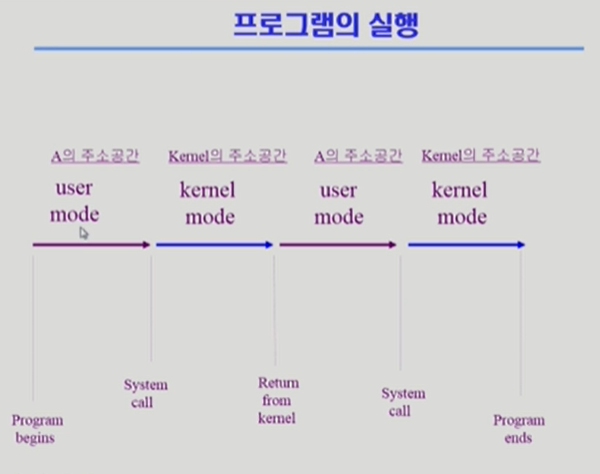 - 이처럼 프로그램은 상황에 따라 CPU의 제어권을 사용자 프로그램(유저모드)과 OS(커널모드)에게 적절히 주며 실행된다.