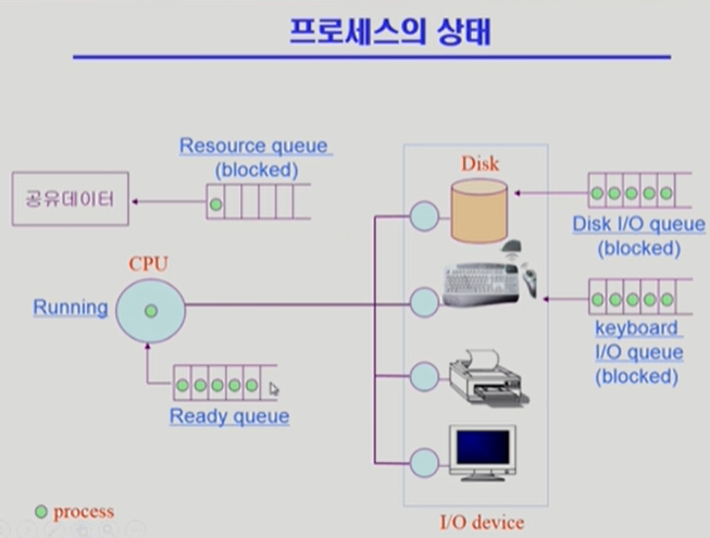 * 운영체제 커널이 자신의 데이터 영역에서 자료구조로 큐를 만들어놓고, 프로세스의 상태를 바꿔가며 CPU 제어권을 통제한다.