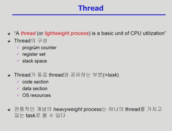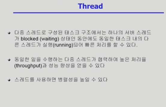 - 프로세스보다 스레드를 만들어 프로세스 내에서 cpu 스위칭하는 것이 경제적이다.