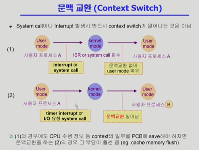 이 경우엔 프로세스 컨텍스트 스위칭이라고 불러야 한다