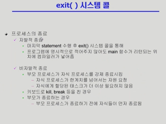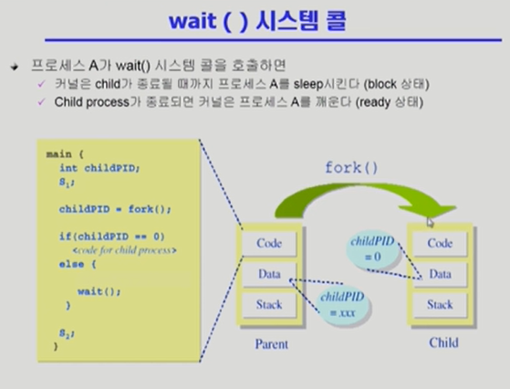 * 자식이 종료될 때까지 기다리는 시스템 콜