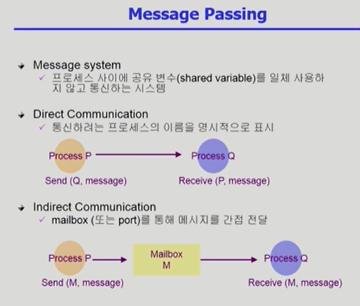 - 운영체제 커널을 통해 다른 프로세스에게 메시지를 전달하고 받는다.